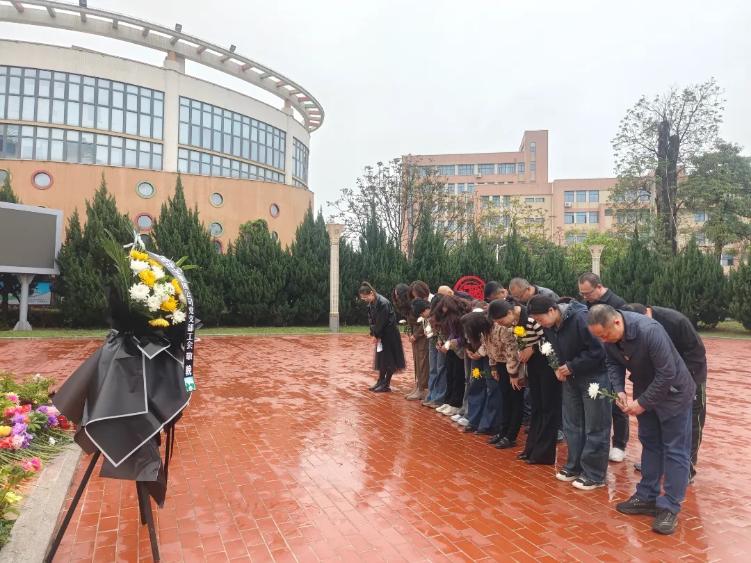 上午10时,祭奠仪式在庄严肃穆的氛围中正式开始。全体人员肃立默哀一分钟,向为民族独立和人民解放事业英勇献身的革命先烈致以最深切的哀思。 随后,党员代表李树海、余红庆护送花篮缓步走向烈士纪念碑,党支部书记、工会主席师体伟与职工代表陈云伟共同整理挽联。全体人员向革命先烈行三鞠躬礼,并依次敬献鲜花,表达对英雄的无限敬仰与追思。